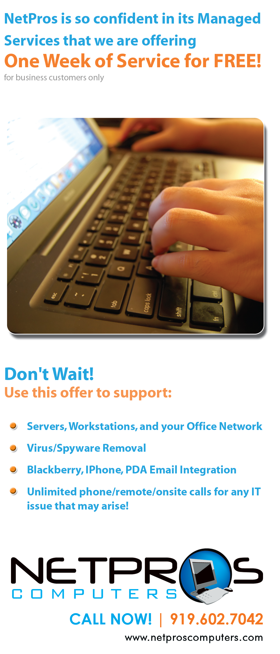 In addition to business offering, we provide an array of computer services to individuals in the Raleigh/Durham and surrounding areas.